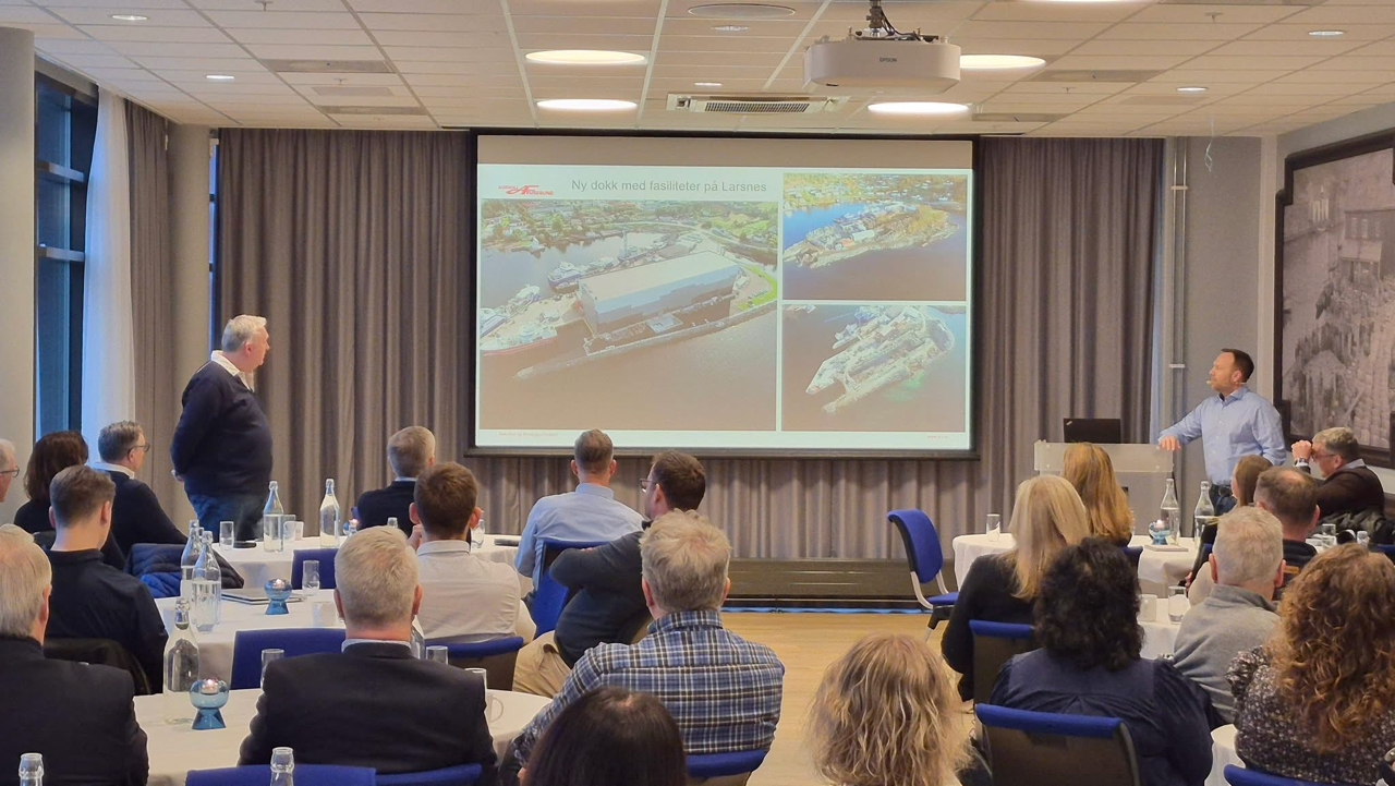 I går, den 23.3.2026 hadde vi gleden av å delta på Fosnavåg Shippingklubb mandagsklubb, der vi fikk presentere selskapet vårt, i tillegg til gjennomførte og pågående prosjekter for verftsnæringen (Ny dokk med fasiliteter til Larsnes Mek. Verksted og utvidelse av uteområde til Myklebust Verft), samt vi fikk presentere status på utviklingen av Dragsund Næringspark. Det er alltid givende å dele innsikt med lokalnæringen – og ikke minst få muligheten til å løfte frem de spennende initiativene som nå er i gang.